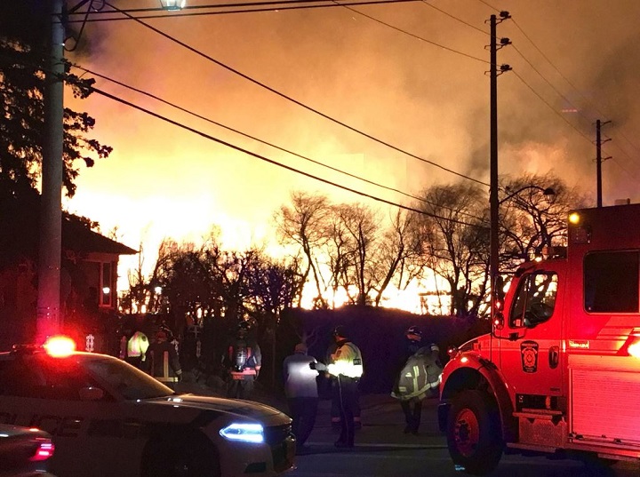 “It was a complete inferno,” area resident Mary Banks told Global News on Saturday. “It was like looking into the very heart of a fire. Flaming red, orange — it was intense.