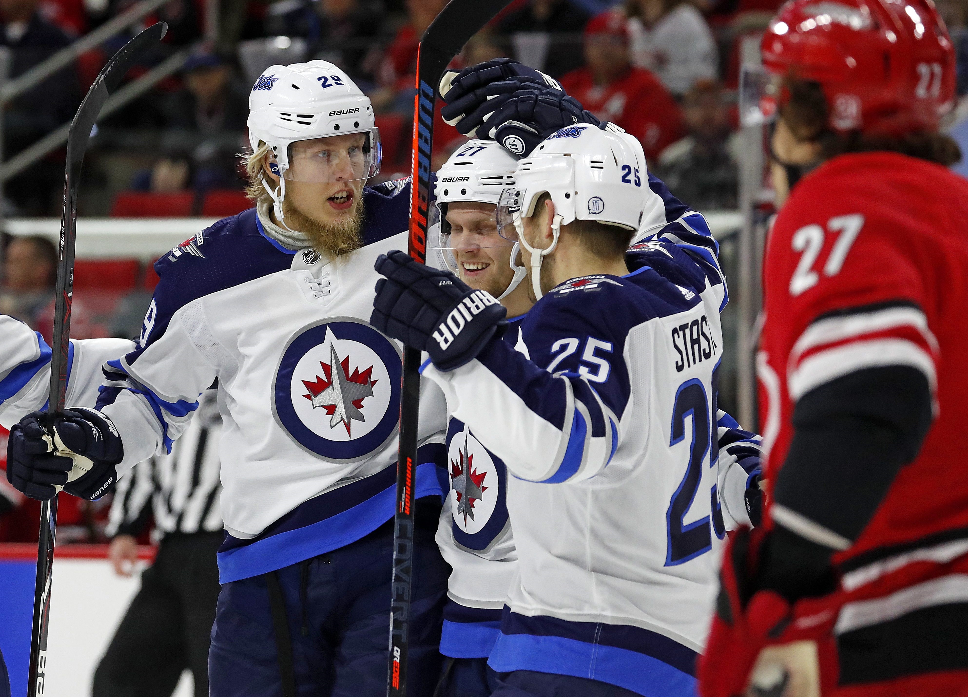 The Winnipeg Jets rode the goaltending of Connor Hellebuyck and the goal scoring of Patrik Laine to a 3-2 win over Carolina on Sunday Night to kick off a more than week long road trip that will wind up next Tuesday in Nashville.