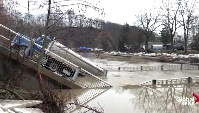 The 27-year-old man driving was not injured in the bridge collapse, which occurred days after severe rainfall and melting snow resulted in flooding across southwestern Ontario.