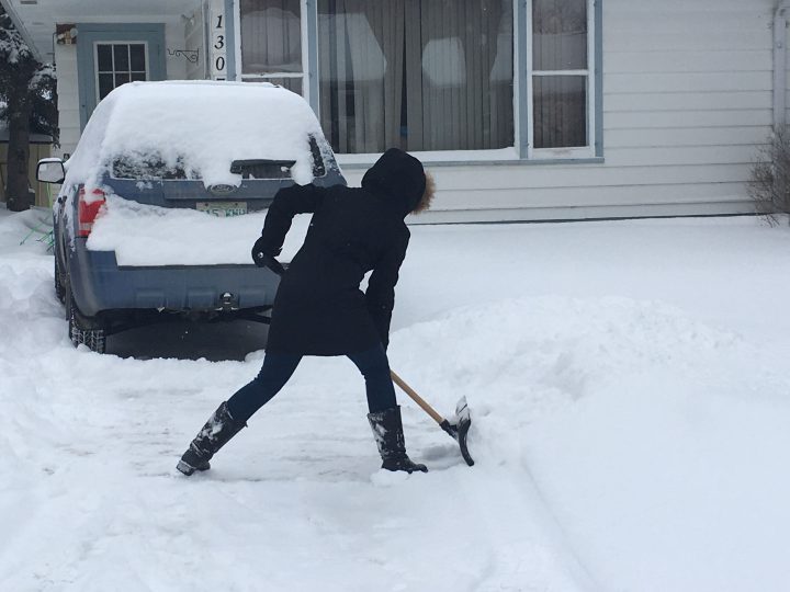 “There’s lots of snow to push and my shovel is pretty small,” she said with a giggle.