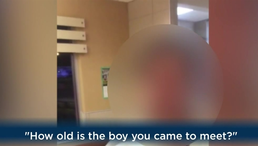 The video shows a man being confronted and asked, “How old is the boy you came to meet?”