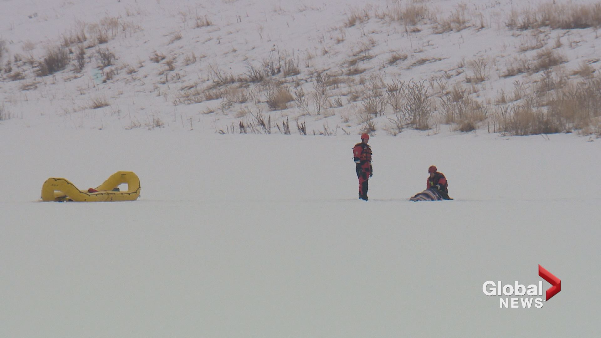 The Calgary Fire Department’s water rescue team arrived and asked the people to get off the ice for their own safety.