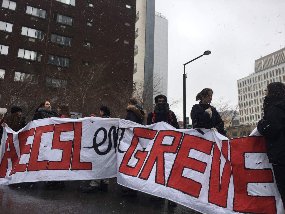A small but vocal group of students staged a one-day strike outside Concordia University on International Women’s Day.