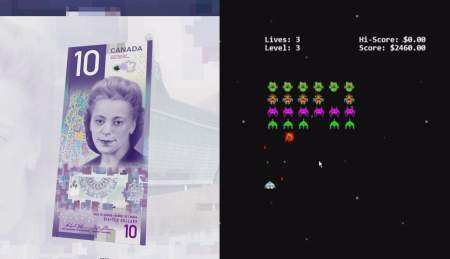 The digital easter-egg can be accessed with just a few clicks of the “spin” button, which causes a modified version of Space Invaders, called Bank of Canada: Inflation Busters, to appear.