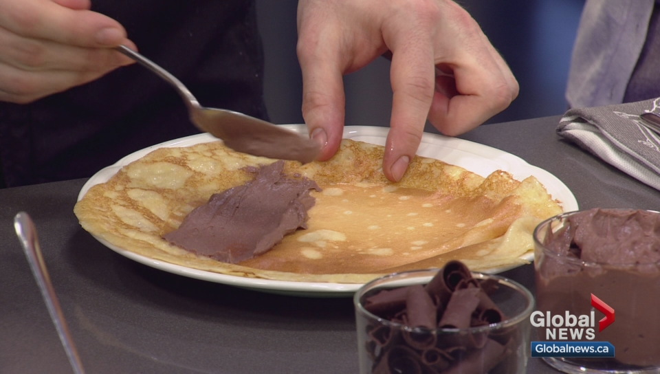 1. Spread a heaping table spoon of chocolate ricotta on one half of the crêpe.