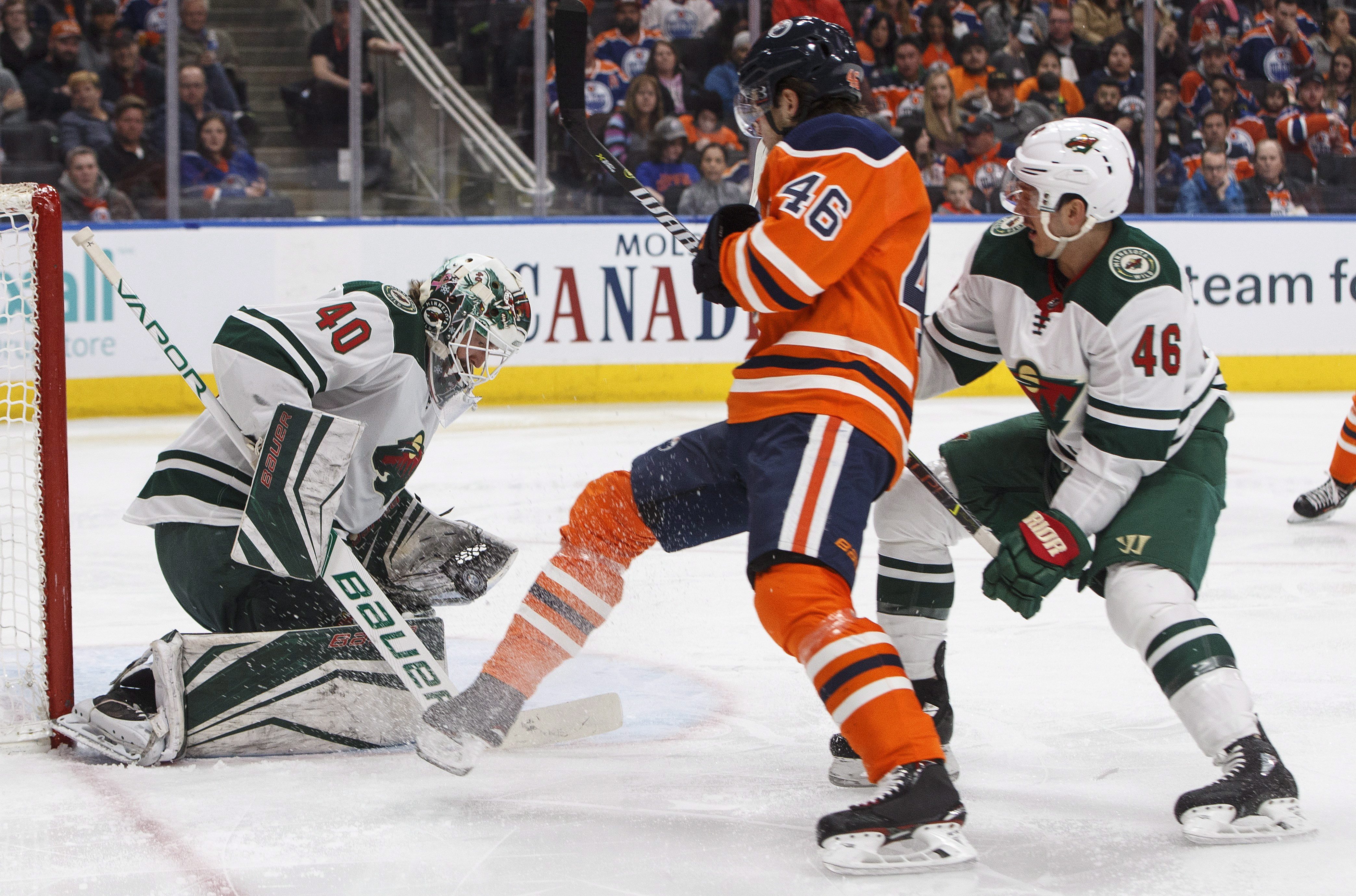 Charlie Coyle put the Wild on the board halfway through the third period. With five minutes left, Cam Talbot made a stretching blocker save on Jason Zucker to keep the Oilers ahead by one.