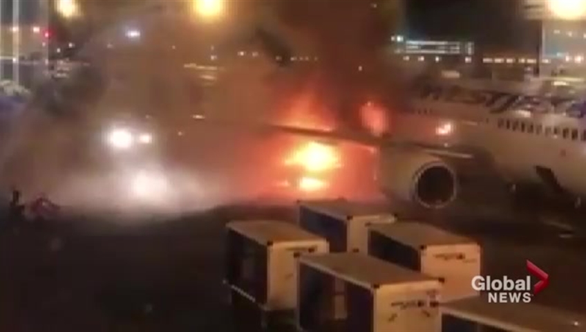 EDITOR’S NOTE: WestJet originally said no passengers were on the plane at the time. However, an updated statement from the company stated an error was made in its original statement and that “guests were quickly removed from the area.” Global News has reached out to the company to find out how many people were on board the plane.