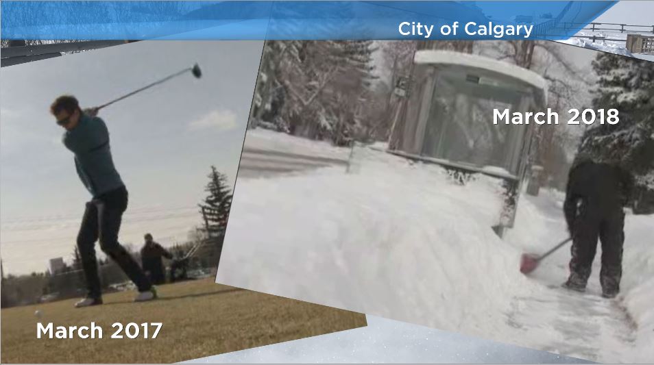 This comes on the heels of over 60 centimetres of snow from Feb. 1, 2018 to March 3, 2018. To make matters worse for Calgarians, on the same date last year it was 14.5 C.