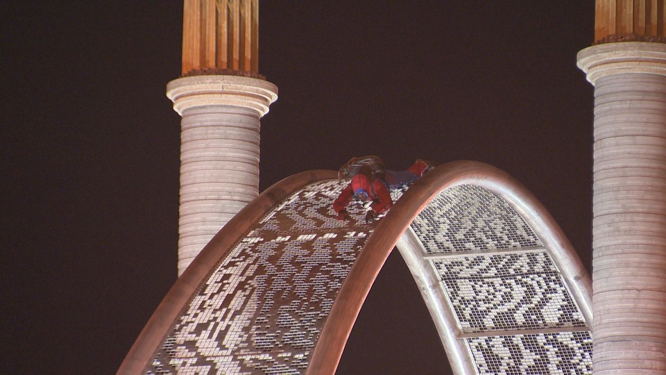 Early Friday, Global News captured a person dressed as Spider-Man climbing Norwood Bridge in Winnipeg.