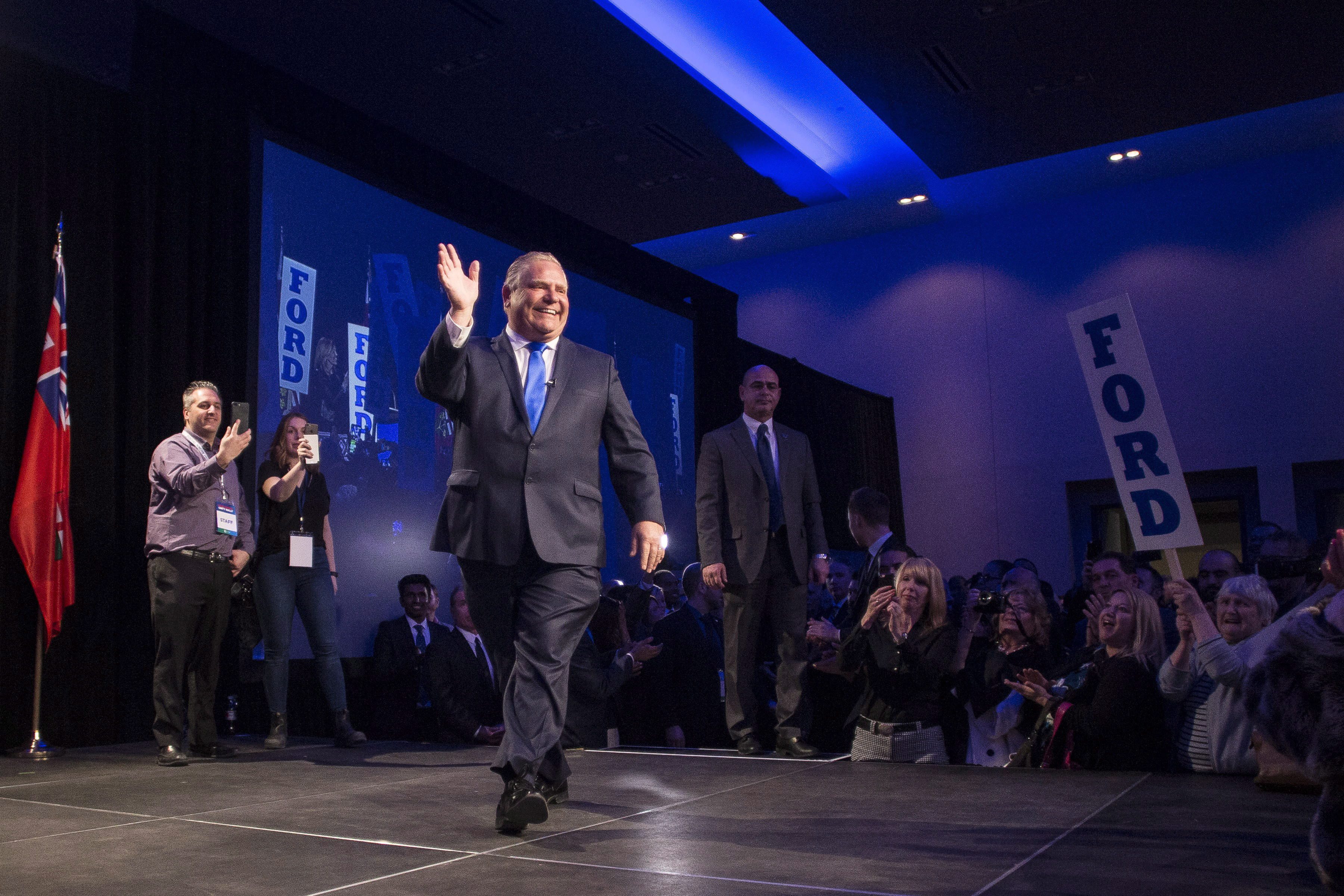 Before his speech, Ford was joined onstage by Christine Elliott, Caroline Mulroney and Tanya Granic Allen, the three candidates he beat in the leadership race.