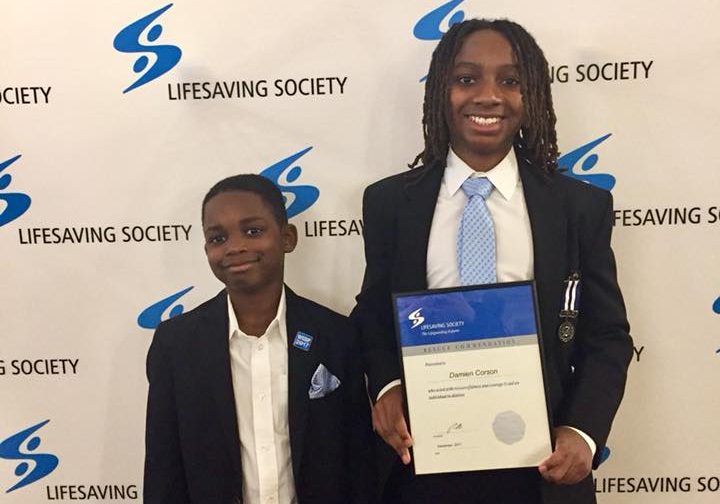 Earlier this month, 11-year-old Damien Corson was awarded a Silver Medal of Merit at a Lifesaving Society awards ceremony in Vancouver for his actions.