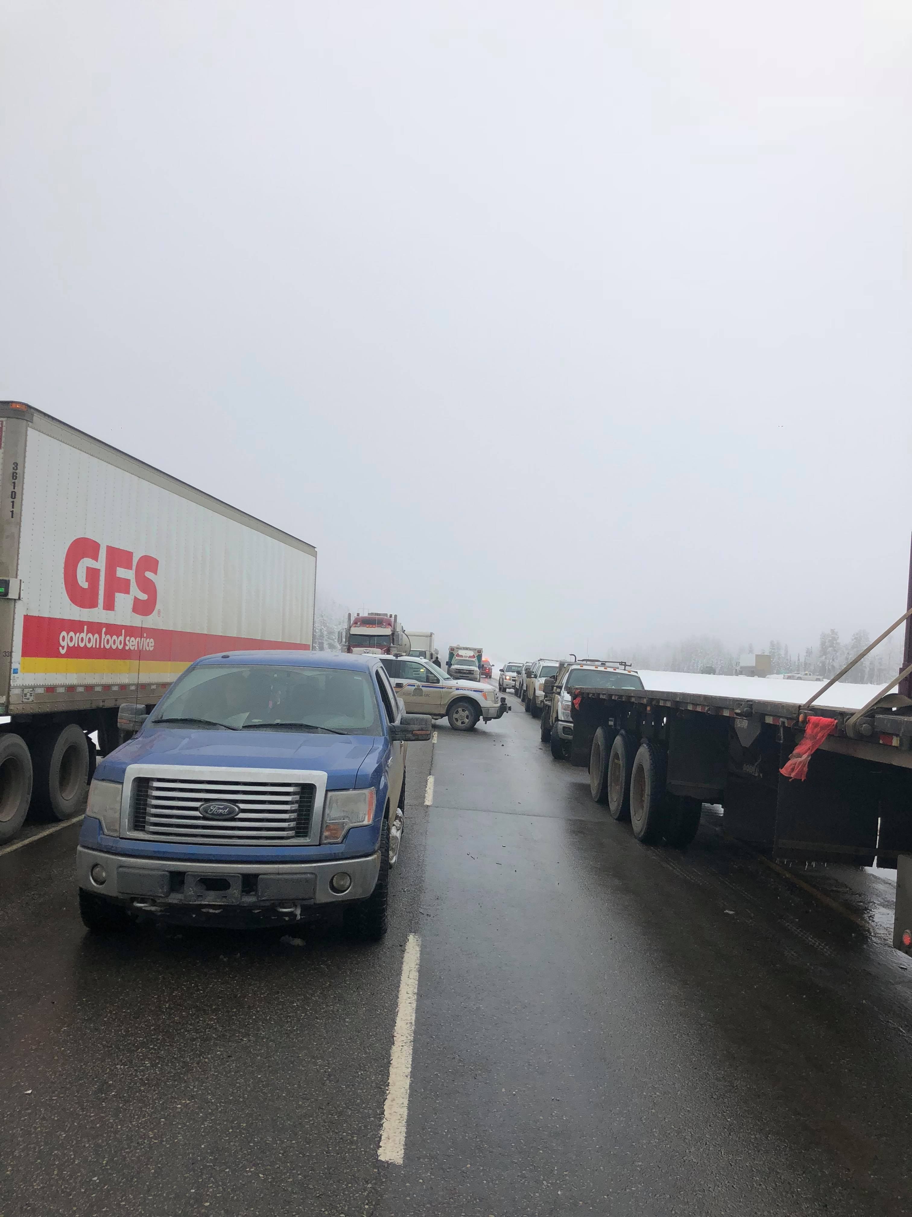 Drivers were encouraged to avoid the highway because of icy conditions and no visibility in some areas.