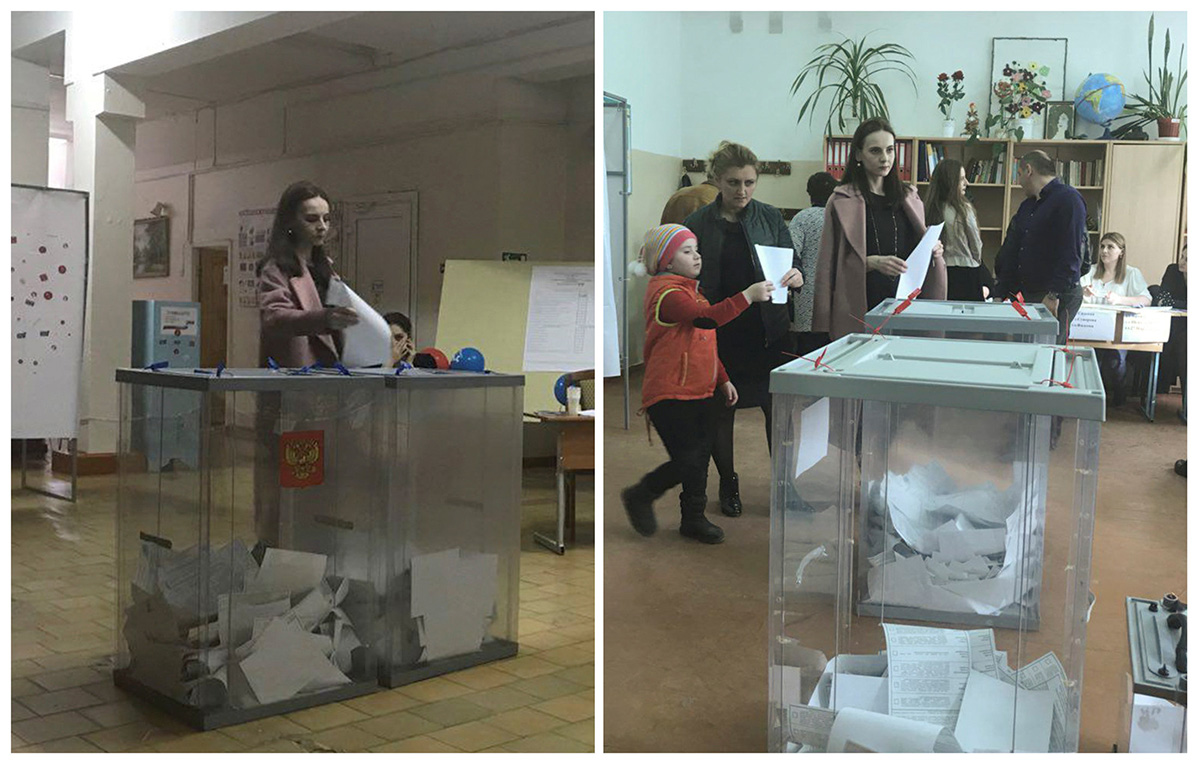 Sklyarevskaya, who denied any wrongdoing, was among 17 people who were photographed by Reuters apparently casting ballots at more than one polling station Sunday in the town of Ust-Djeguta, southern Russia.