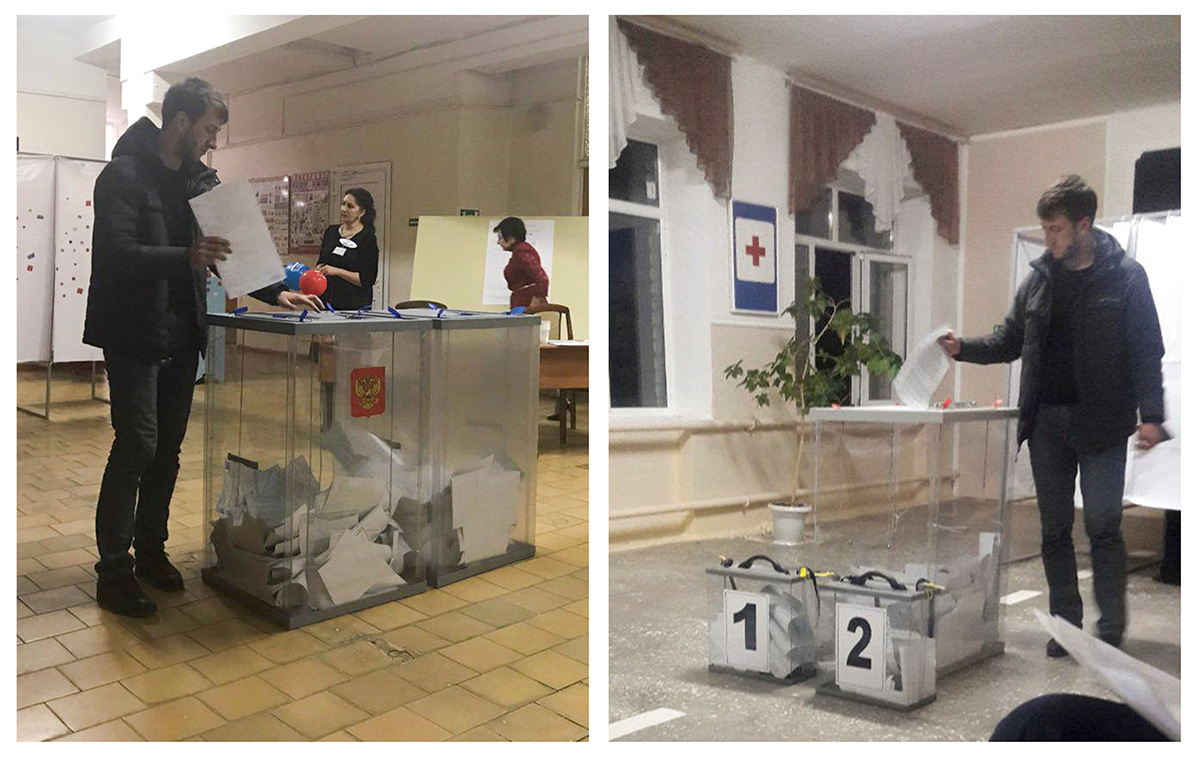Photos appear to show Russians casting multiple votes