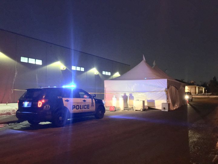 Several police vehicles were on scene in the area of 51 Street and 162 Avenue Wednesday night. The police setup included a large white tent, although it’s not known what was inside the tent.