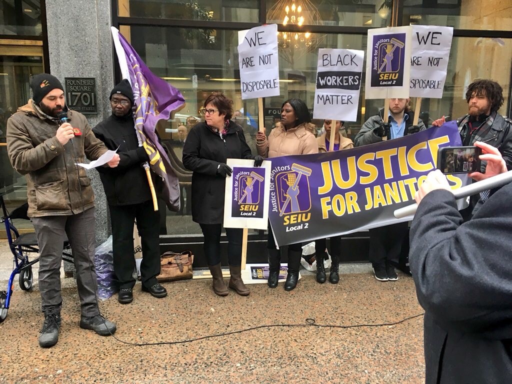 Darius Mirshahi, an organizer with the Service Employees International Union Local 2, said the new cleaning contractor only rehired a white non-supervisory janitor.