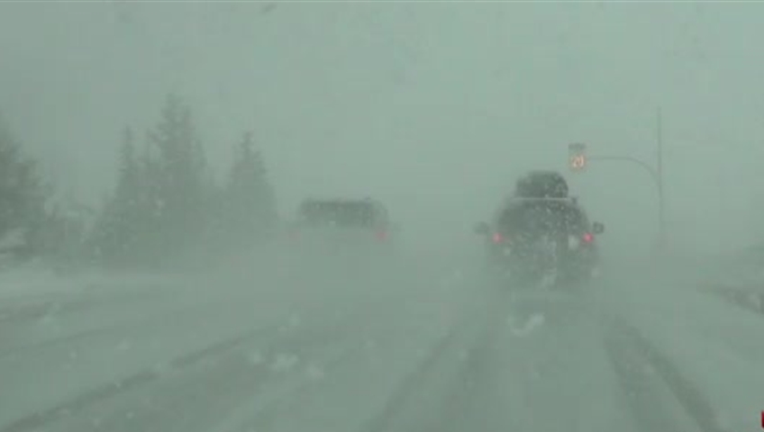 Dashcam captured near the Coquihalla summit at around 3:30 p.m. on Thursday shows cars driving through conditions so snowy you can hardly see the lines on the road.