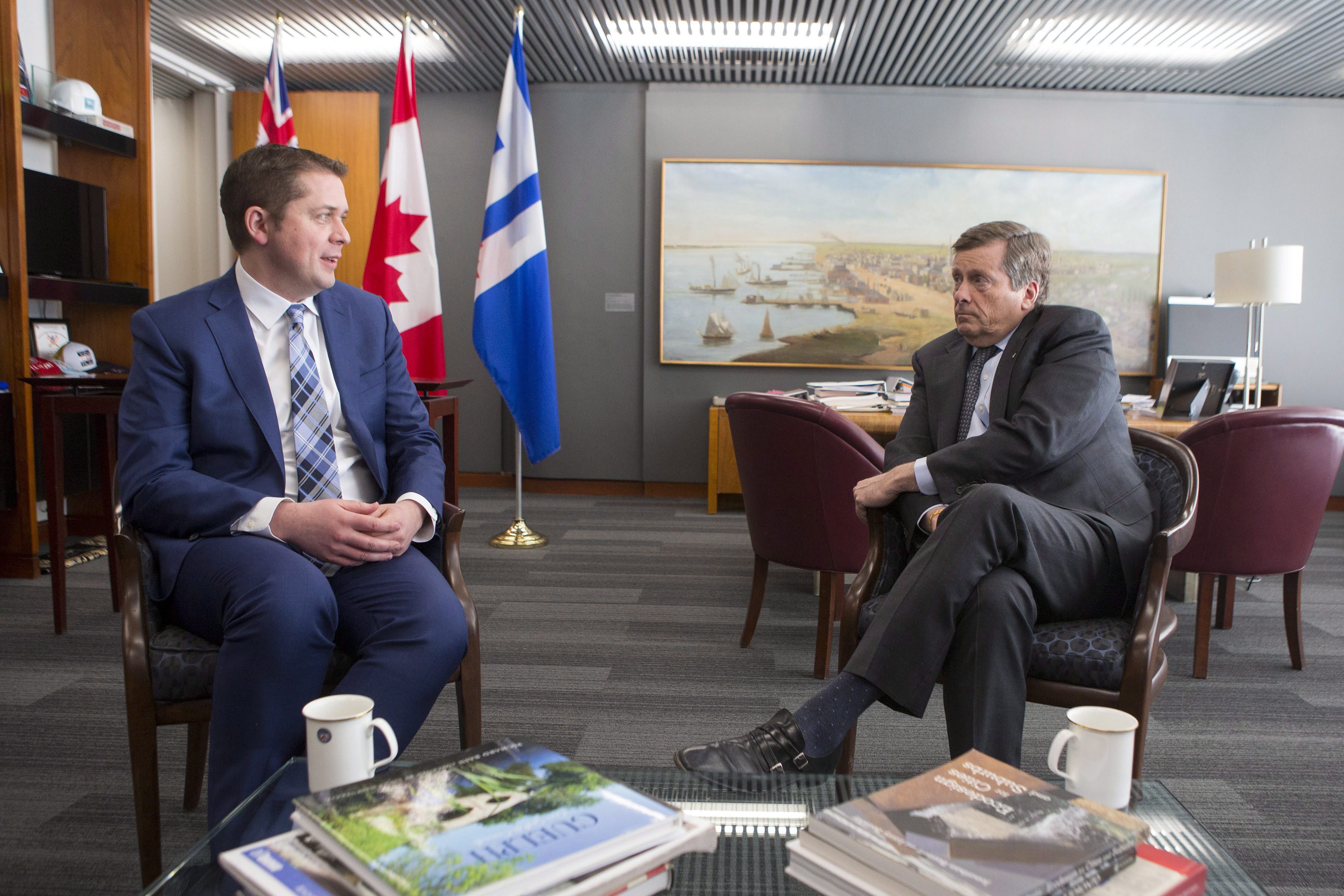 TORONTO — Conservative Leader Andrew Scheer and Toronto Mayor John Tory said they discussed affordable housing, gun control, transit and infrastructure in a meeting on Friday, touting the importance of strong federal-municipal relations.