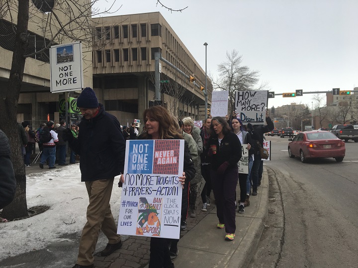 Around 200 people attended the March for Our Lives in Calgary in front of the U.S. Consulate on Saturday. They were lending their voices to similar marches held around the world demanding stricter gun control laws.