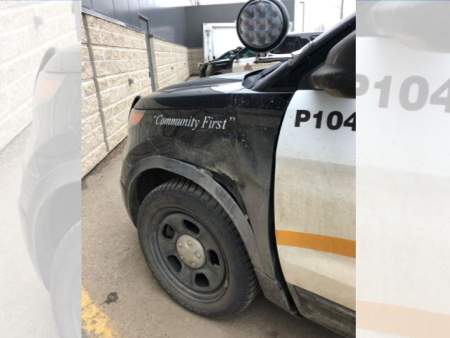 “The tire flew/bounced across the ditch, across the eastbound and westbound lanes of the (Trans-Canada) Highway and struck the second police car,” a Brandon Police Service media release described.