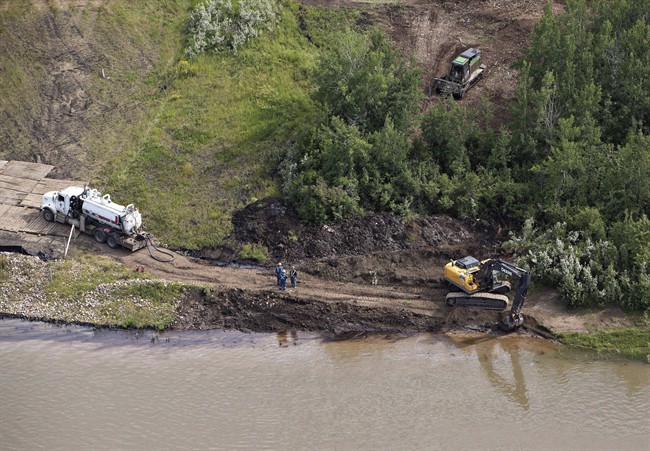 CORRECTION: An earlier version of the story indicated “225,000 litres of oil leaked into the North Saskatchewan River.” From the total spill, 40 per cent of the oil entered the river. The rest remained on land.