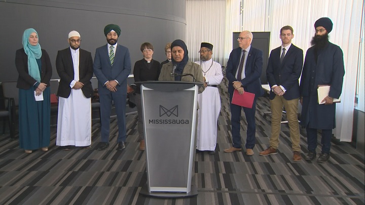“I am disgusted and disturbed by these hate-filled actions that have occurred in our city and I stand with not only the Muslim community, but with all faiths — many of whom are represented here today in condemning this hateful incident,” said Mississauga Mayor Bonnie Crombie.