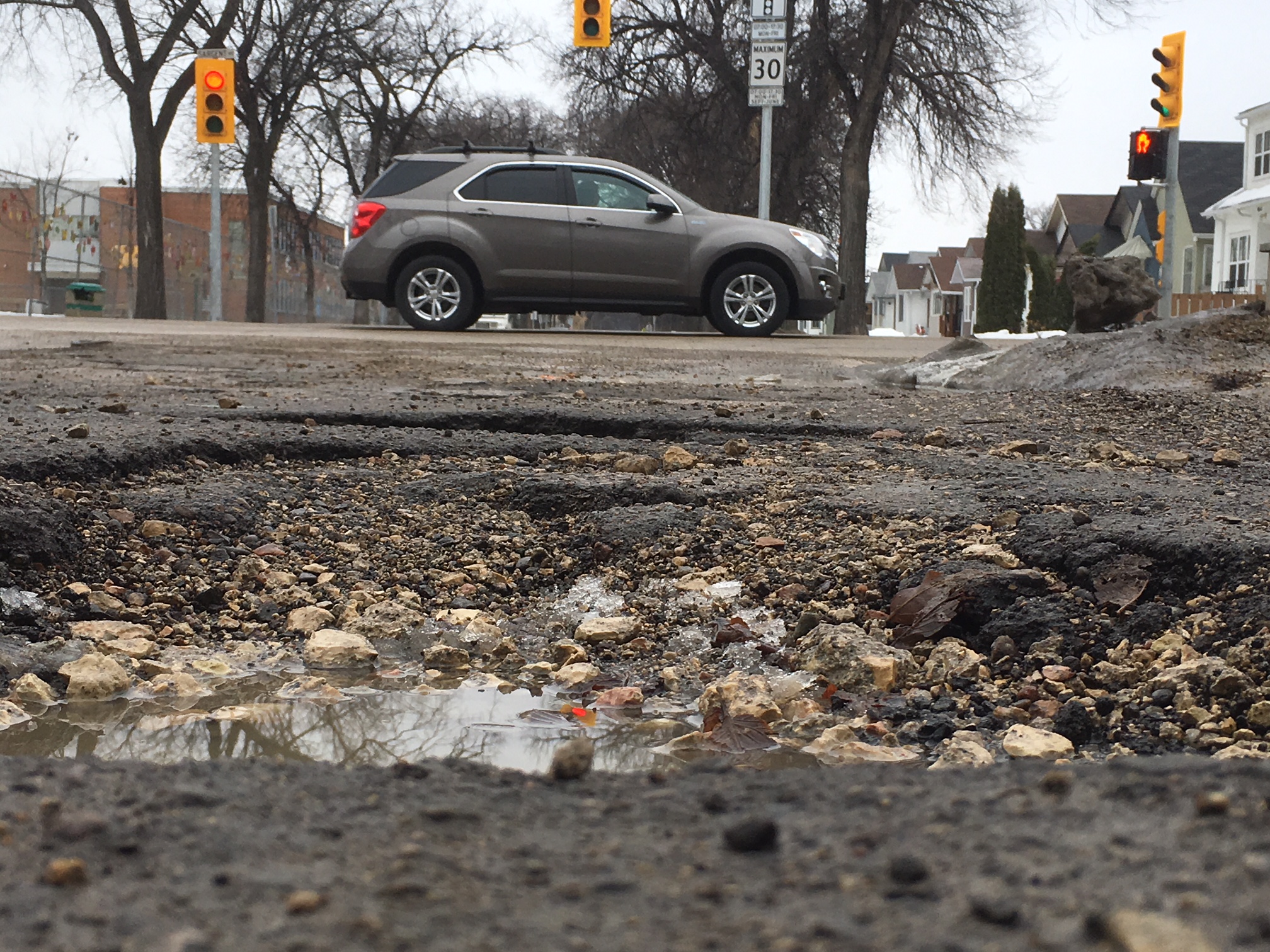 Driving in Winnipeg in the spring is like playing Mario Kart and trying to avoid banana peels.