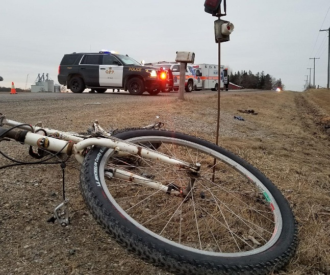 The OPP wants to hear from anyone who was driving on Wellington Road 7 on Tuesday morning and saw the cyclist.