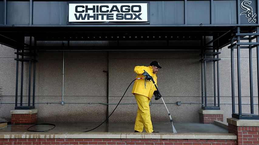 Coleman returned to the baseball field Monday. He began his first shift on the job by spending some time reuniting with his old work friends. He then donned a yellow rubber suit, gloves and goggles before taking a power washer to clean the ground.