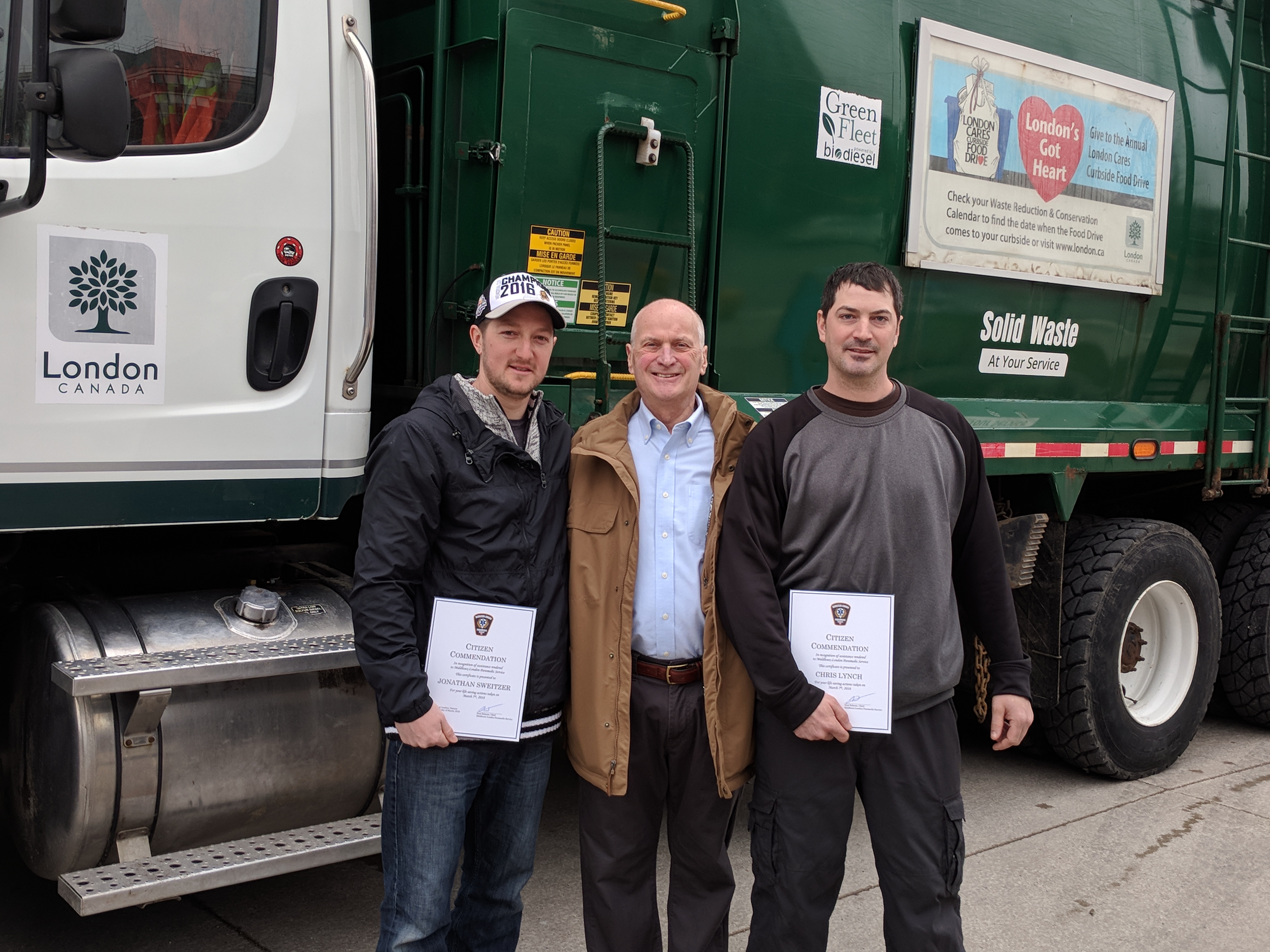 A pair of sanitation operators with the City of London are being recognized for helping save a man’s life earlier this month.