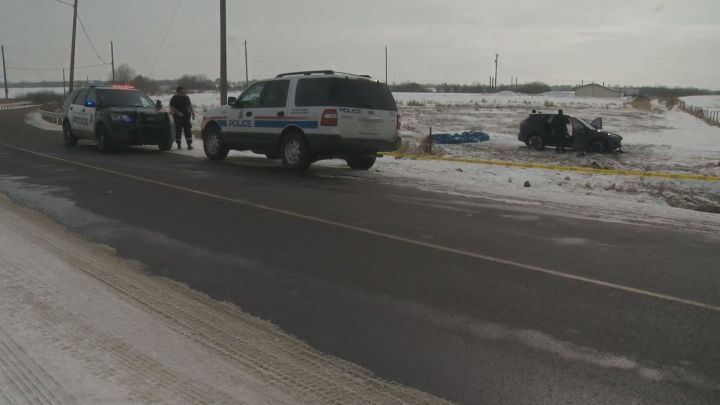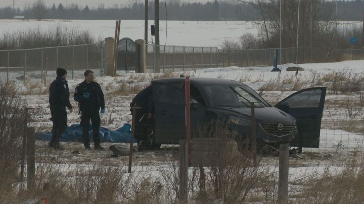 A Global News photographer was on scene in the area of 18 Street and Manning Drive early Wednesday morning and could see a blue SUV in a field with all doors open. Police tape was surrounding the vehicle. There were tracks visible in the snow.