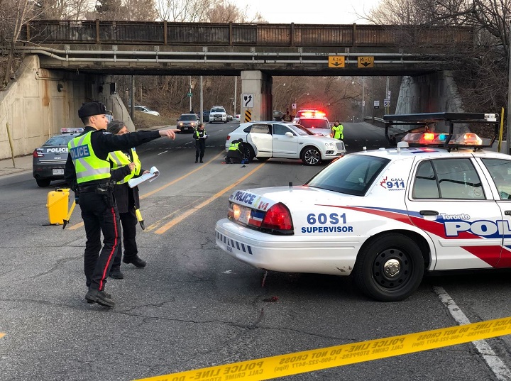 Police said the collision involving a motorcycle and a car on Mount Pleasant Road near Carstowe Road, south of St. Clair Avenue East, happened at around 5:50 p.m.