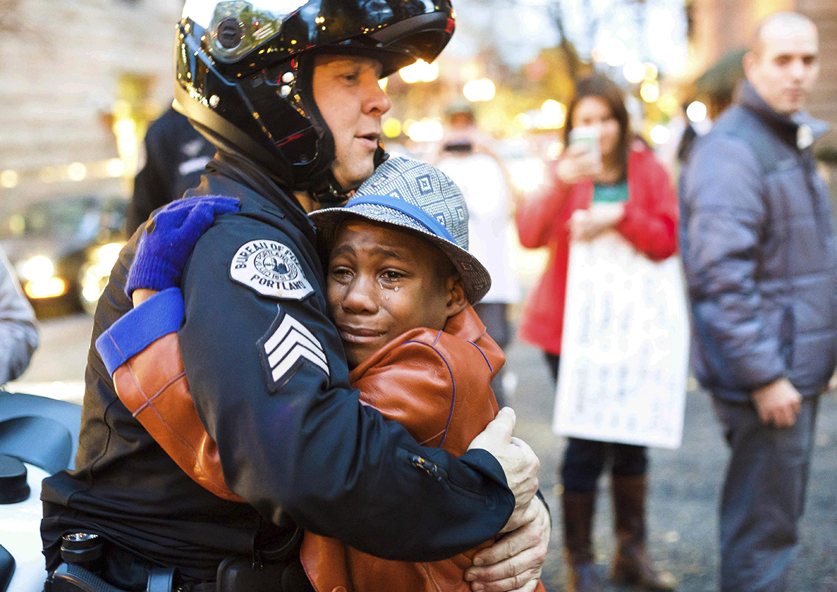 The boy, holding a “Free Hugs” sign, stood crying. A Portland officer saw his sign and asked if he could have a hug, and an emotional Hart embraced him in a picture that was widely shared.