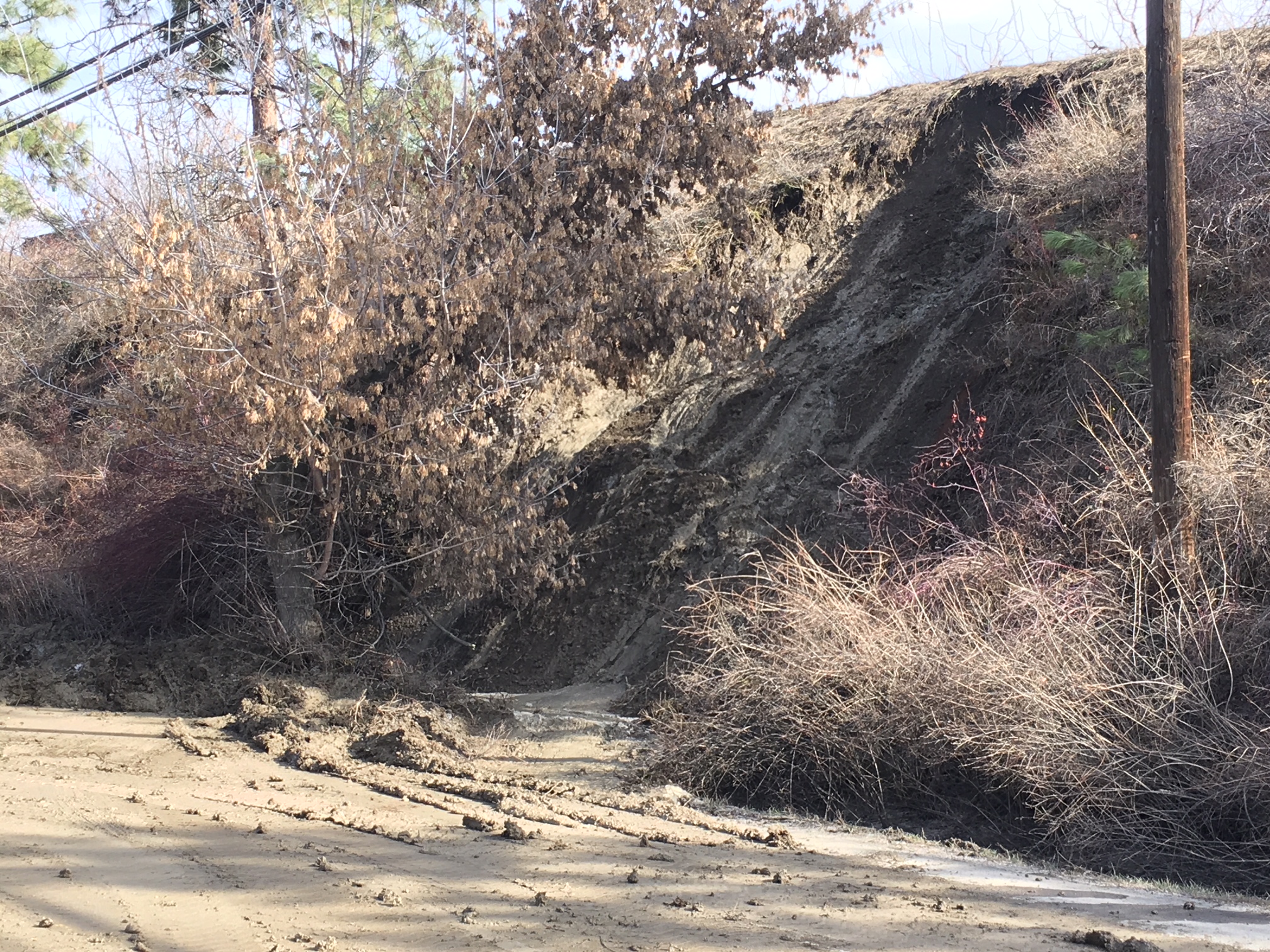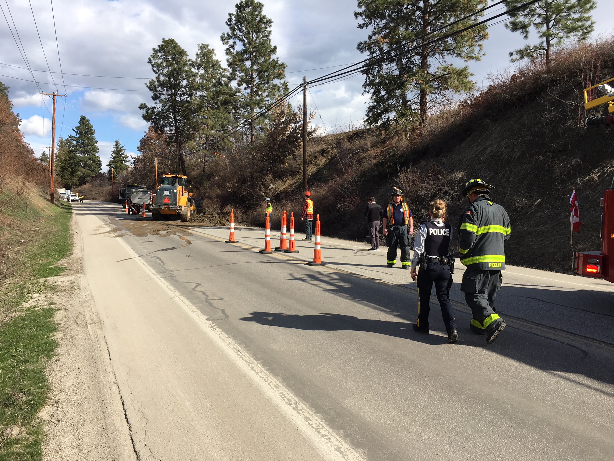 A small hillside slough has reduced KLO Road to single lane, alternating traffic near the Harvest Golf Club.