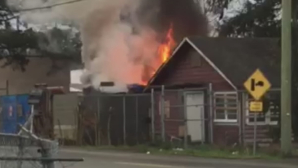 Flames and smoke engulfed a storage structure in Chilliwack on Thursday that neighbours say has been used by homeless people.