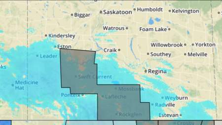 Officials said five centimetres of snow fell as the system moved into the Dakotas, with a narrow band of the province from the Swift Current area to Rockglen receiving up to 10 cm.