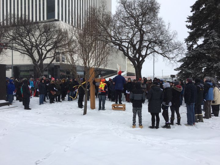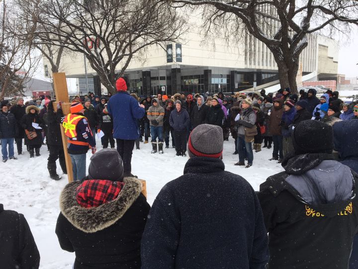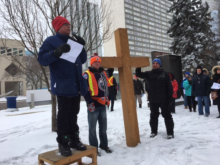 About 200 people took to the streets in downtown Edmonton on Good Friday for the annual Way of the Cross.