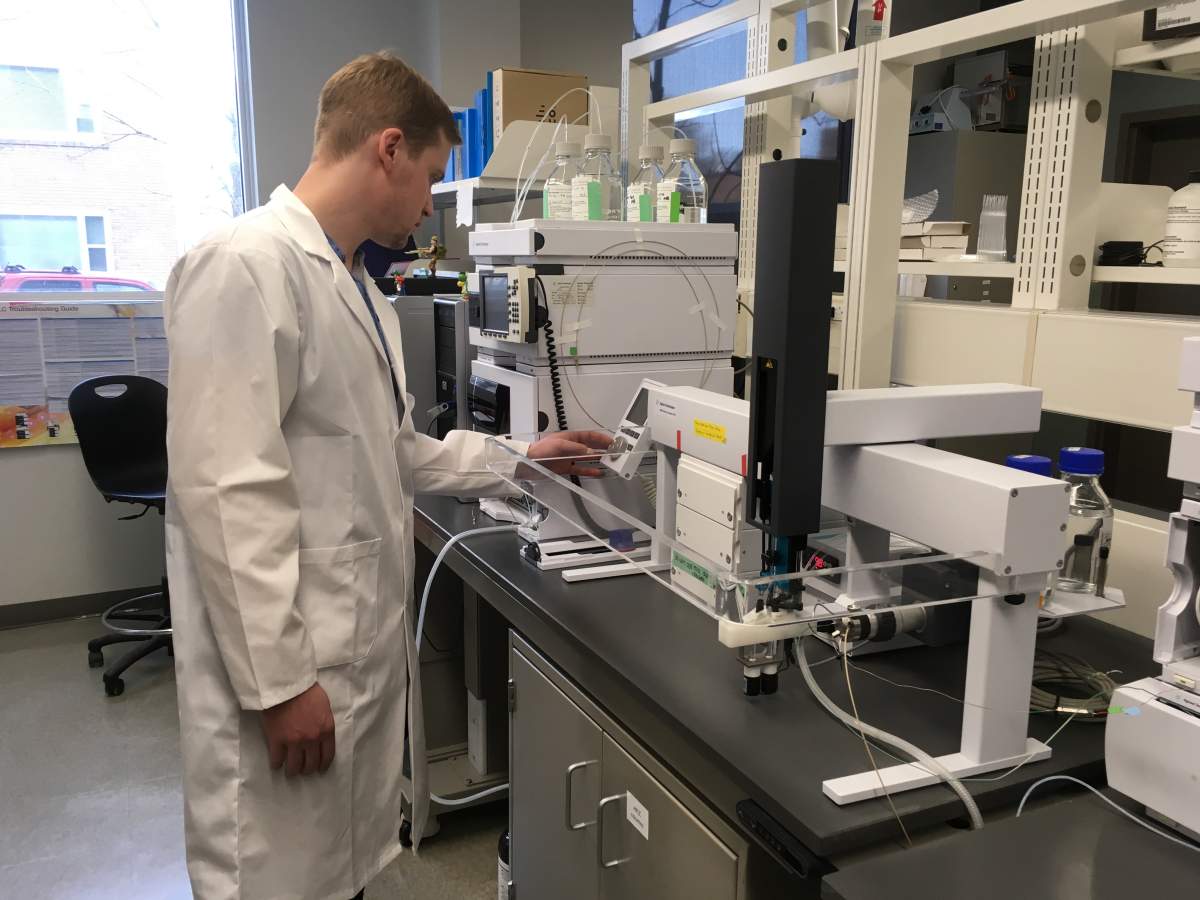 “You take a bottle out to the environment, dunk it in a river or lake and bring it back to the lab,” Challis explained. “Often that’s the most time consuming aspect of the whole process because we have to get the sample clean enough to analyze it on our very sensitive instruments.”