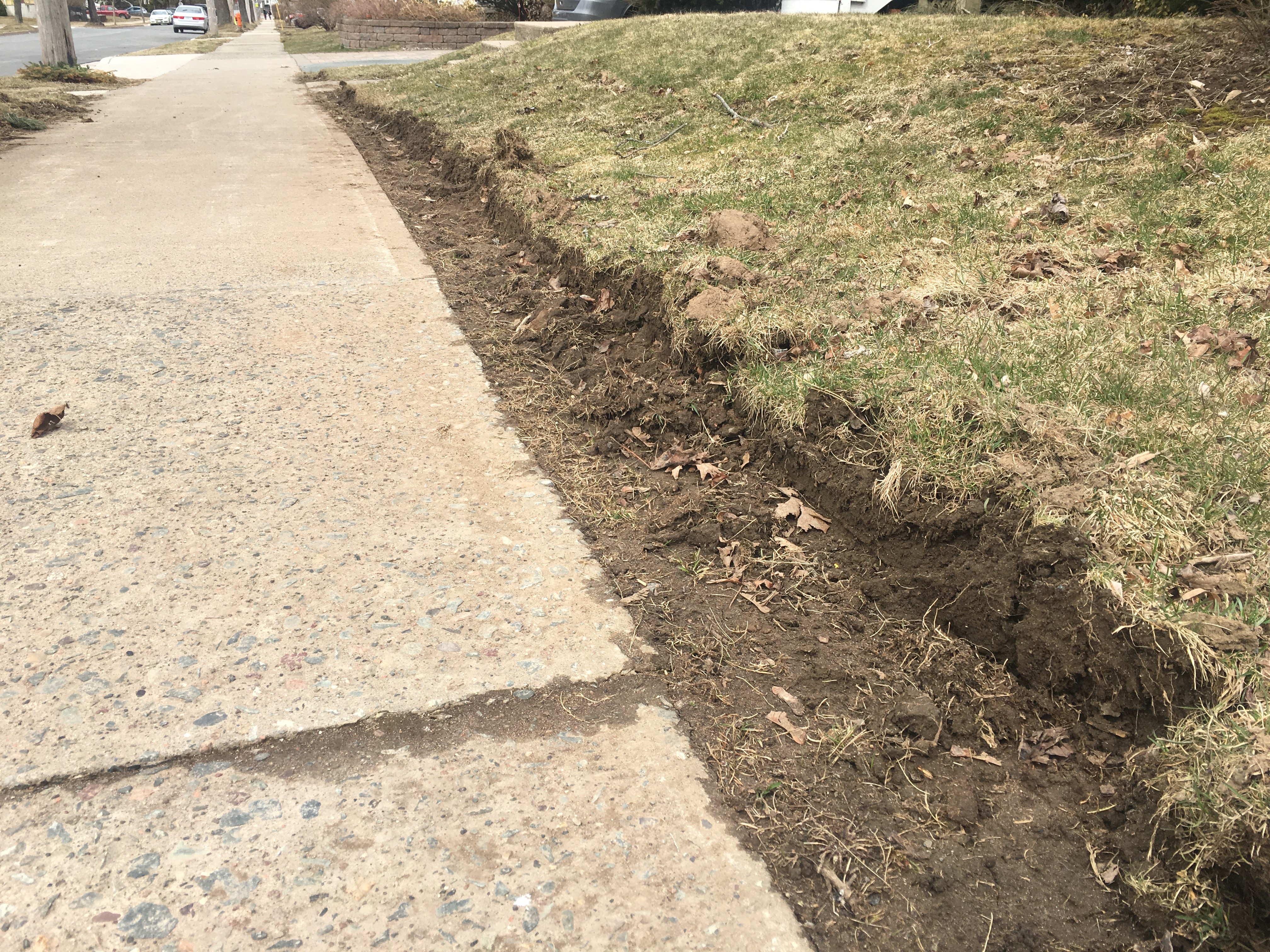 Damaged yards and sidewalks caused by oversized snow-clearing equipment is a yearly occurrence one regional councillor hears about regularly.