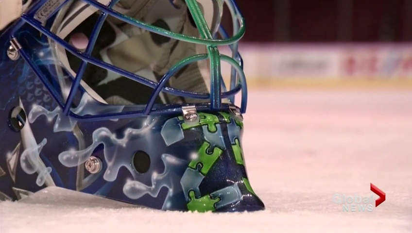 But along the part of the mask that protects his jaw, he’ll sport puzzle pieces — symbols meant to mark the 10th year of the Canucks Autism Network (CAN), as well as World Autism Awareness Day.