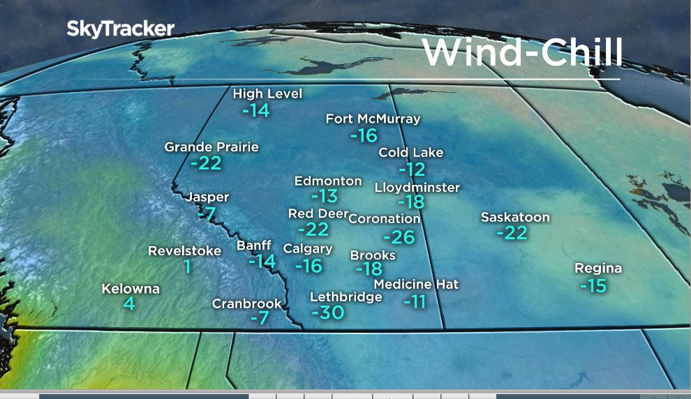 High wind chill values were reported across southern Alberta Monday evening.