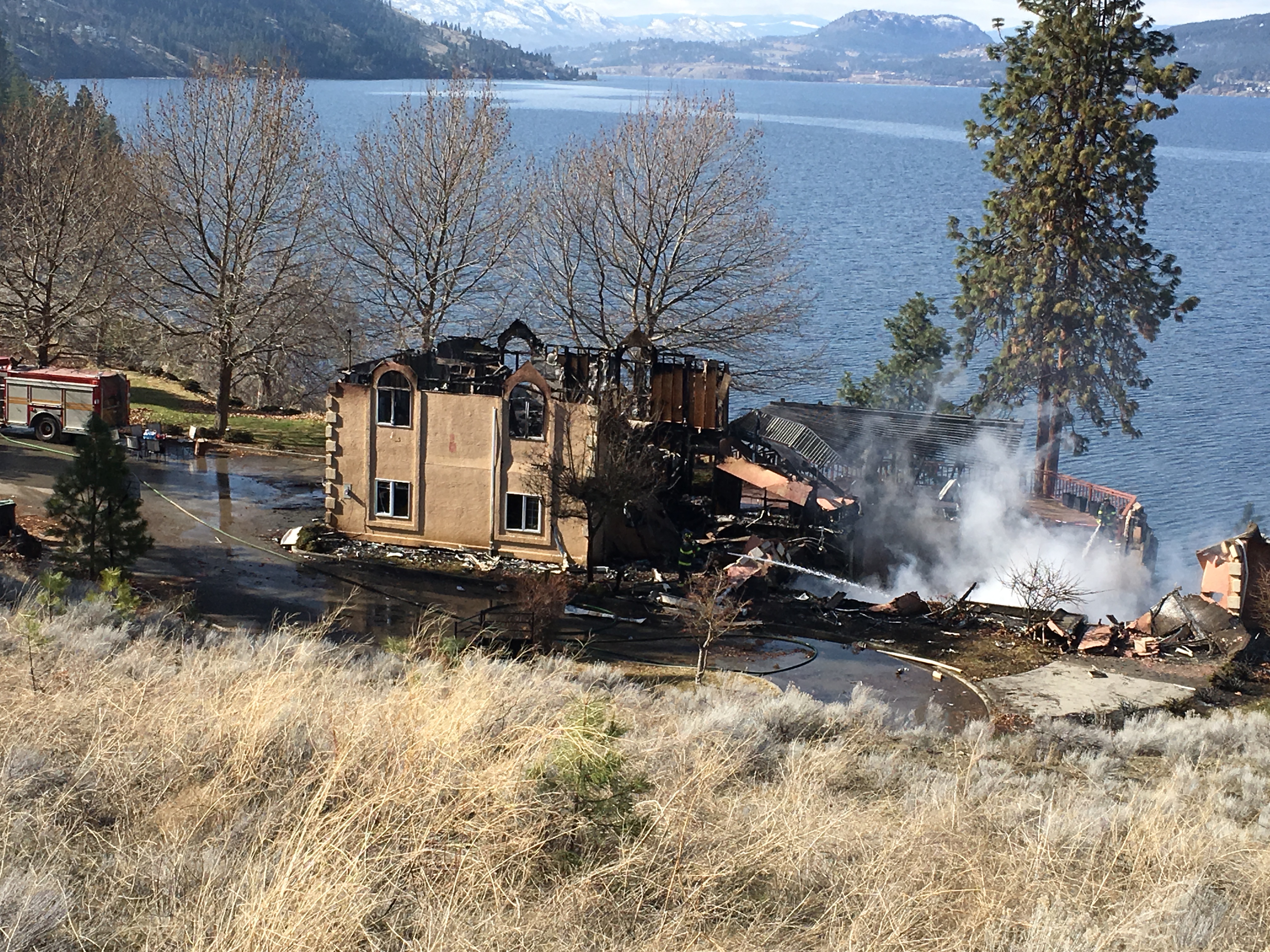 A large home at the end of Bennett Road in Kelowna’s McKinley Landing neighbourhood has been leveled by a fire.