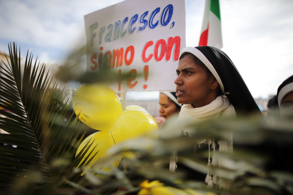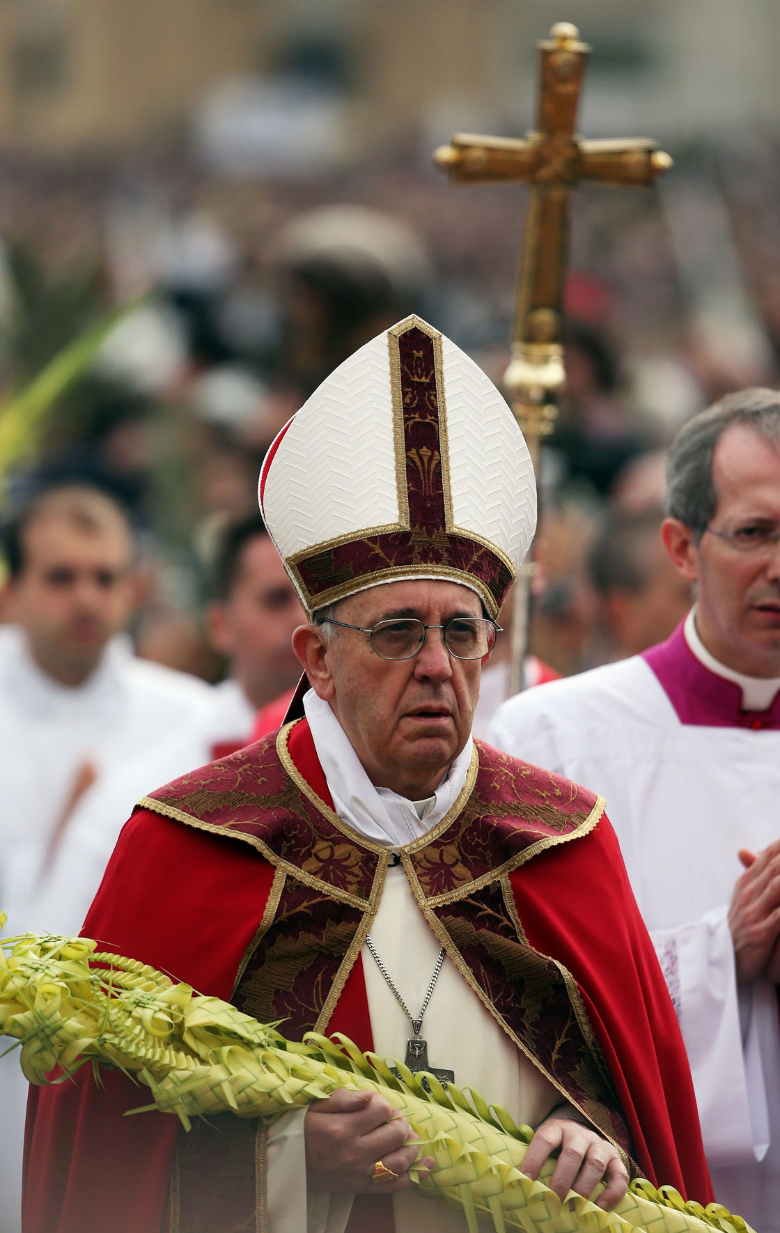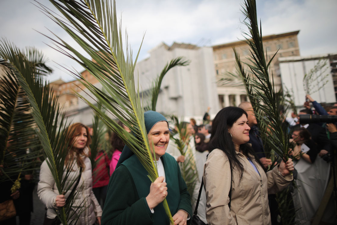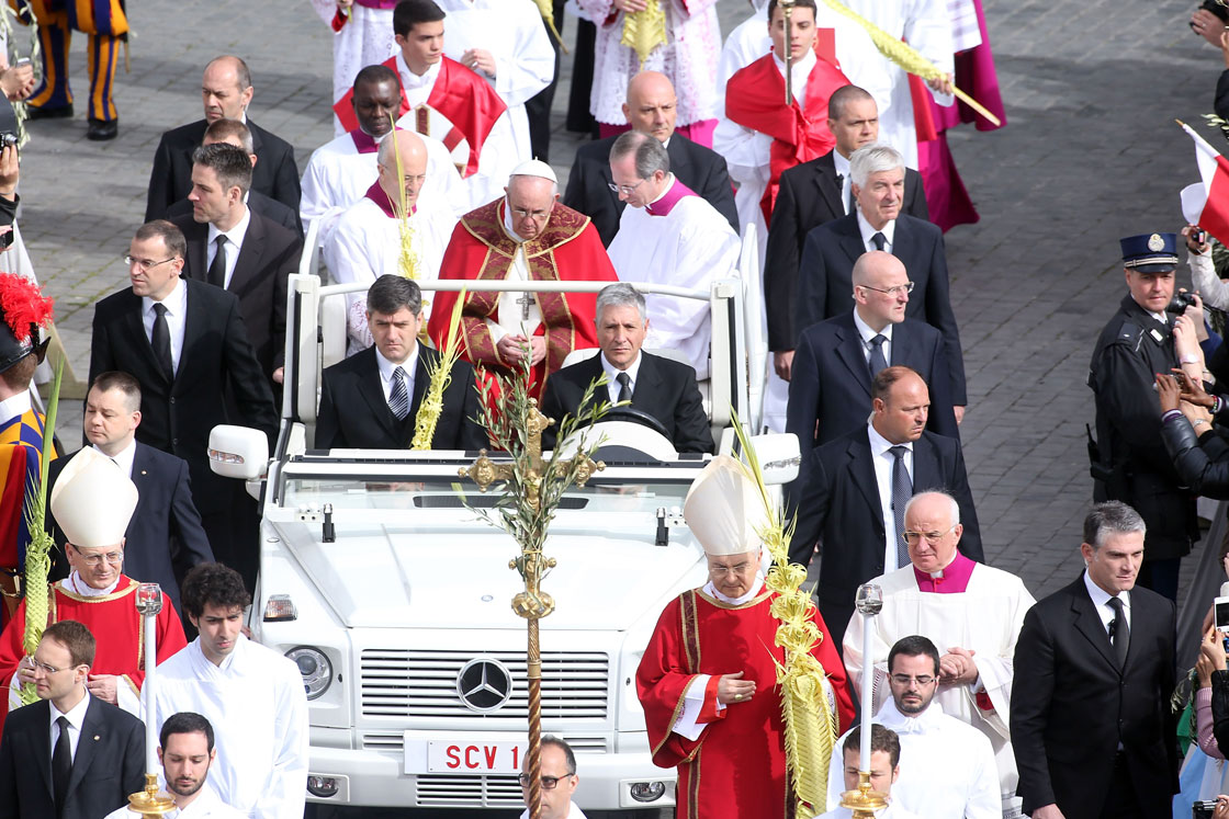 Pope Francis celebrated his first Palm Sunday Mass in St. Peter’s Square, encouraging people to be humble and young at heart as he promised to go to a youth jamboree Brazil this summer, while the faithful enthusiastically waved olive branches and braided palm fronds.