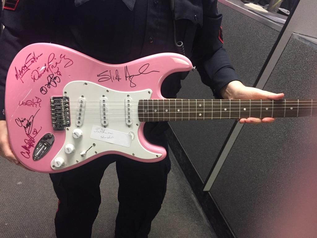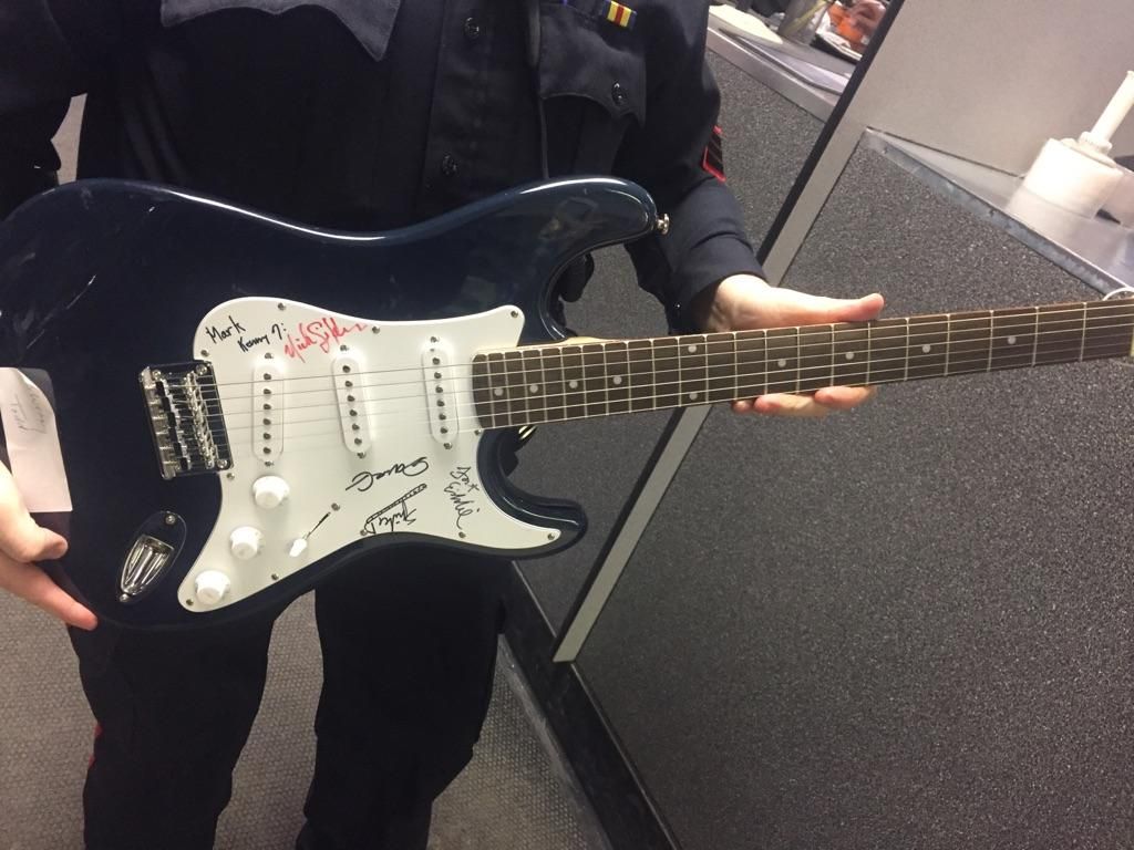 The instruments were signed by celebrities (musicians and a politician) and were going to be auctioned off to help raise money for the charity’s youth music mentorship program.