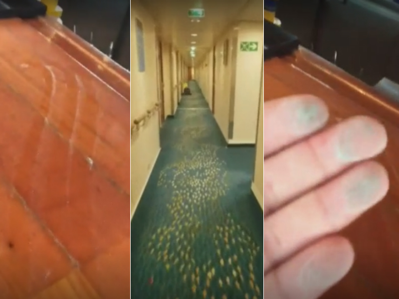 Video from the cruise showed dust piling up on a bar and passengers complaining of noise and fumes in a hallway.