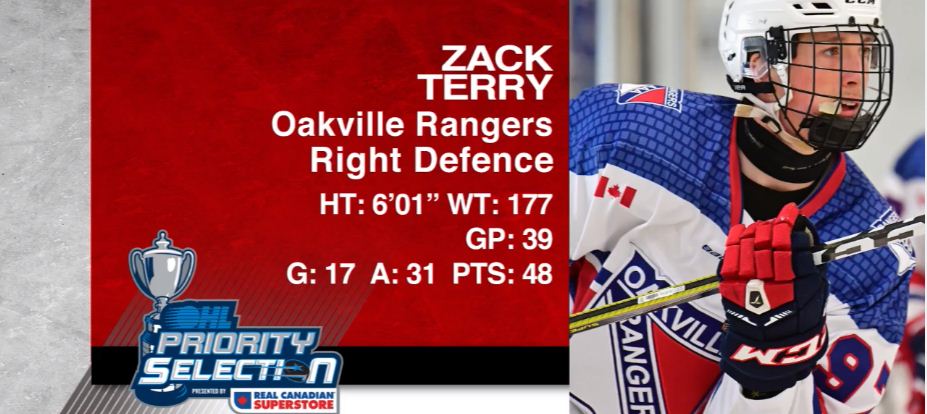 With their first selection in the second round, the Storm gave defenceman Zack Terry of the Oakville Rangers the nod, and two picks later, Guelph selected right-winger Ty Collins of the York Simcoe Express.