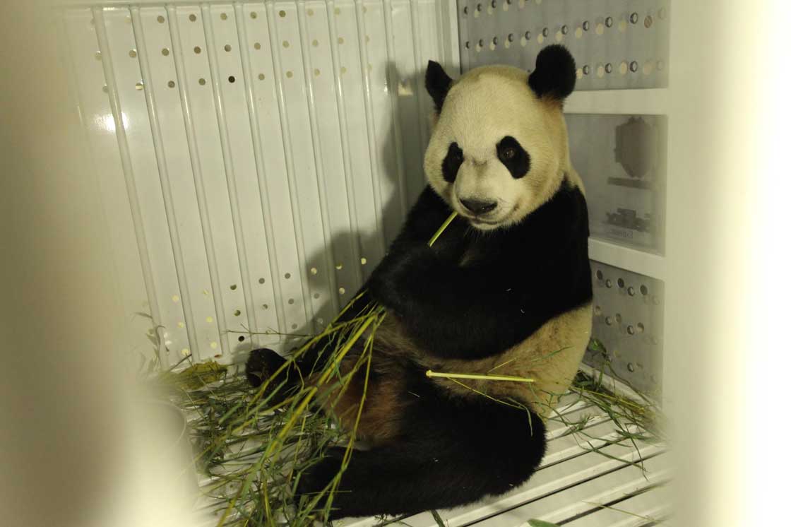 Er Shun and Da Mao, who only met before the 15-hour flight, are making the 12,875-kilometre journey from Chengdu to Toronto aboard a customized FedEx jet dubbed the “Panda Express.” The bears are supervised en route by a veterinarian and two attendants and the plane is stocked with 100 kilograms of bamboo, 150 kilograms of bamboo shoots, 50 kilograms of apples and 15 kilograms of fresh water.