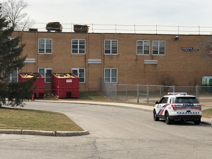 Toronto District School Board (TDSB) spokesperson Ryan Bird told Global News a Grade 3 class was in the gym at the time. He said the asphalt dripped onto two eight-year-old boys. Bird said a “minimal amount” of asphalt landed on a boy’s neck while some asphalt landed on the other boy’s arm causing more serious injuries. It also splattered on an eight-year-old girl’s shirt, but she was uninjured.