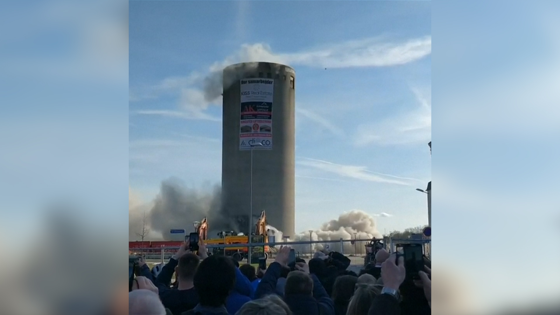 The planned demolition of a silo in southern Denmark went spectacularly wrong this past Friday when the structure fell in the opposite direction as intended.