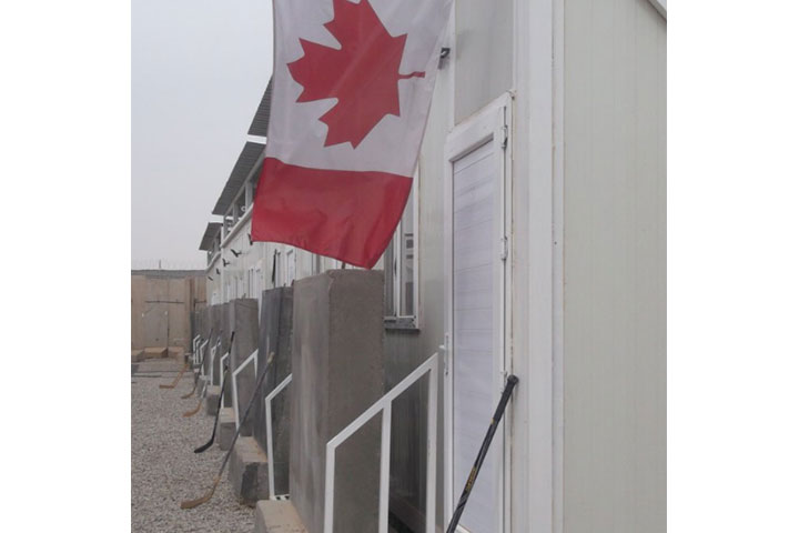 The Canadian Armed Forces tweeted an image showing a Canadian flag hanging above a door, while hockey sticks sit outside of each door of the building.